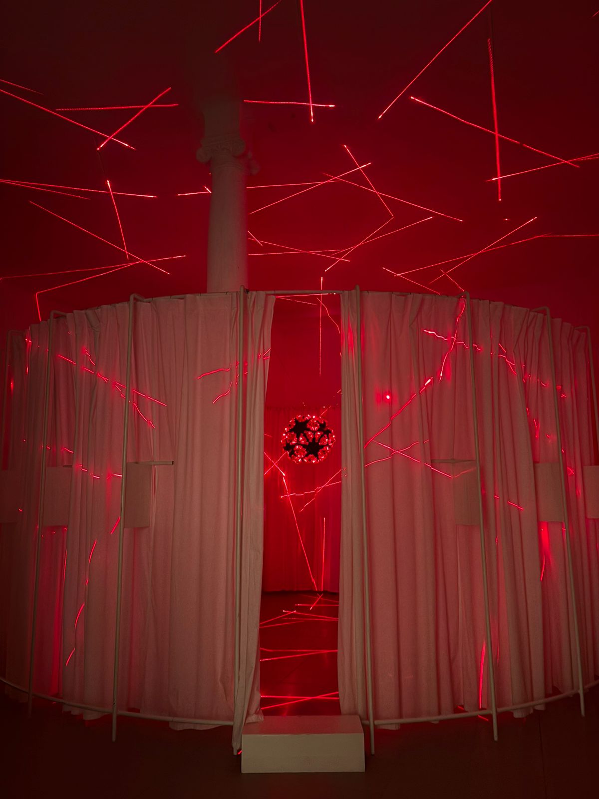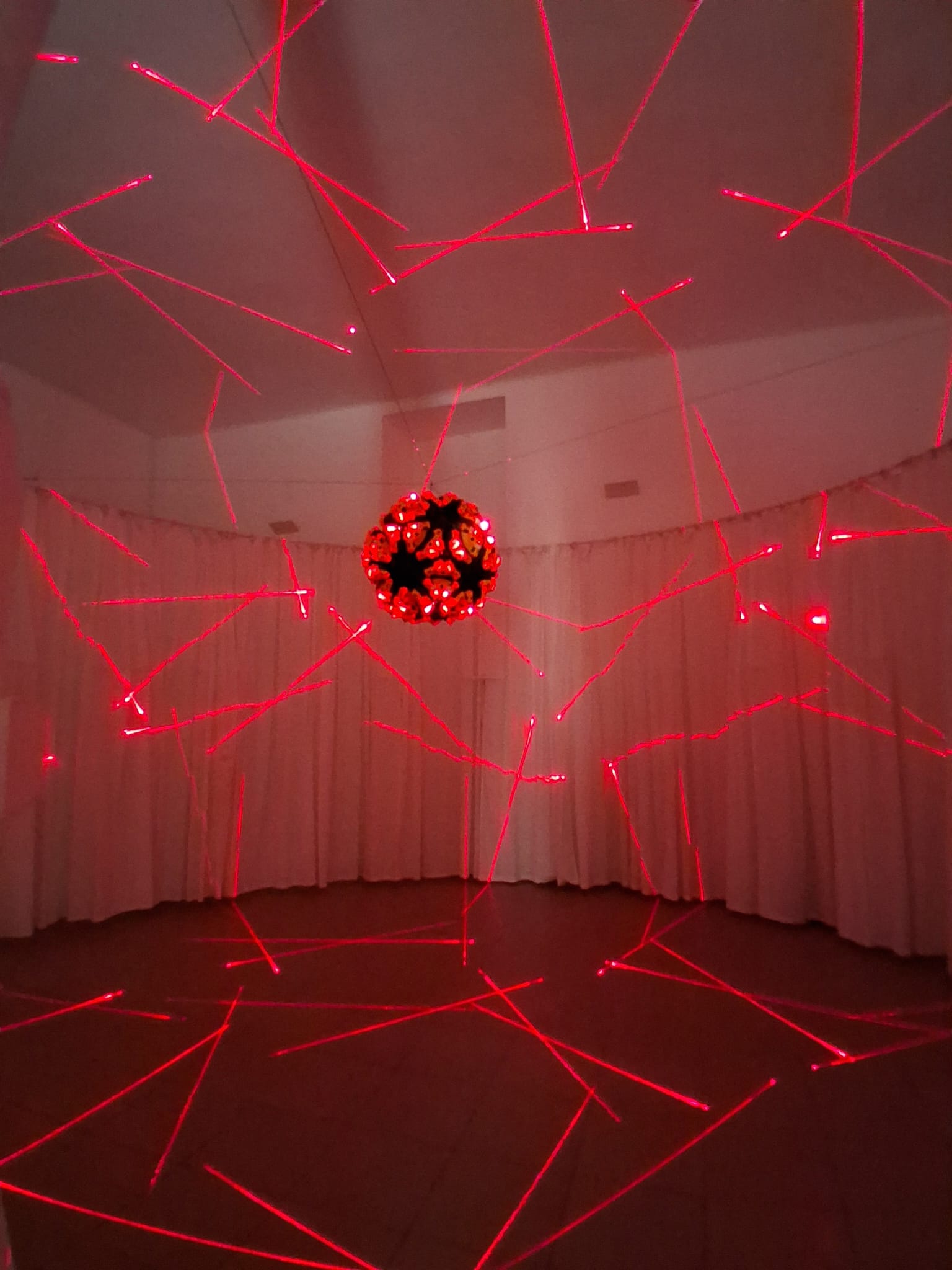 Movido pela ideia desse resultado luminoso resultante da entrada de um corpo sólido proveniente do espaço na atmosfera da Terra, Felipe Barbosa transforma o corpo físico de seu icosaedro em um dispositivo de irradiação de luz. A luminosidade que dele irradia ao depurar formas pentagonais intercaladas entre as suas piramidais o expande de tal forma, que não somos capazes de saber ao certo o quão longe vão chegar… os fachos de laser que dele disparam radialmente e seguem ao infinito, incorporando ao todo da obra conteúdo e continente (o icosaedro e o Quarto 22, respectivamente)